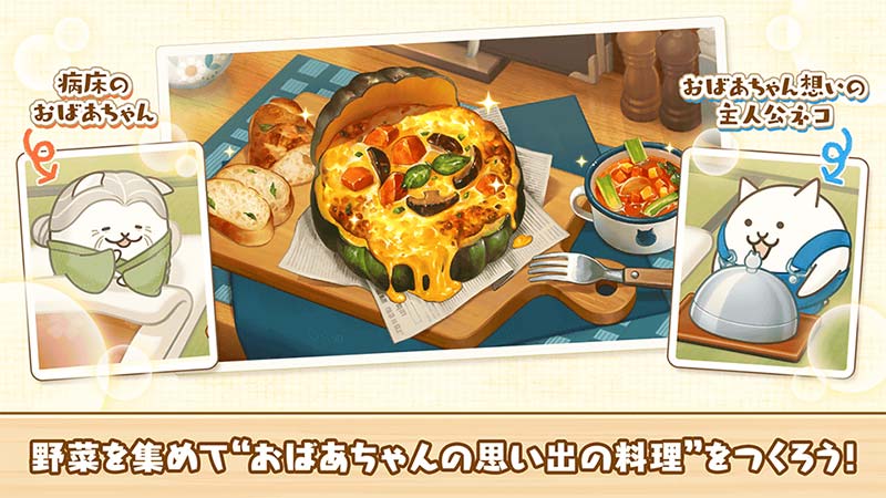 パズルで豊作!にゃんこ村は「にゃんこ大戦争」のキャラクターが登場する癒し系パズルゲームで、スリーマッチパズルと村づくりの両方が楽しめます。